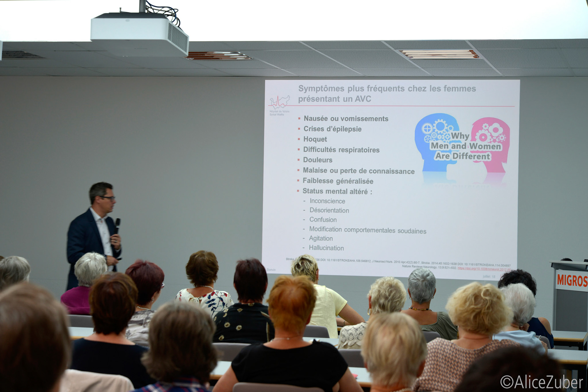5 juillet 2018 - Conférencier: Dr Christophe Bonvin, neurologue, directeur de l'Unité cérébrovasculaire (UCV) à l'Hôpital du Valais. Photos ©Alice Zuber