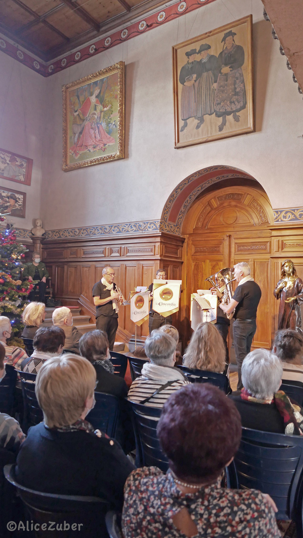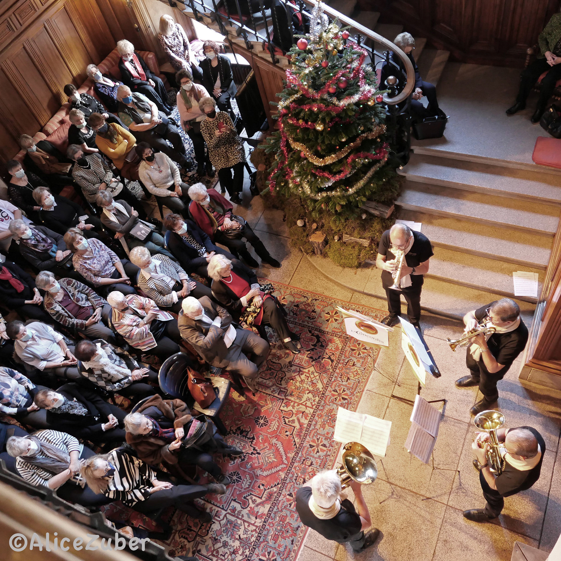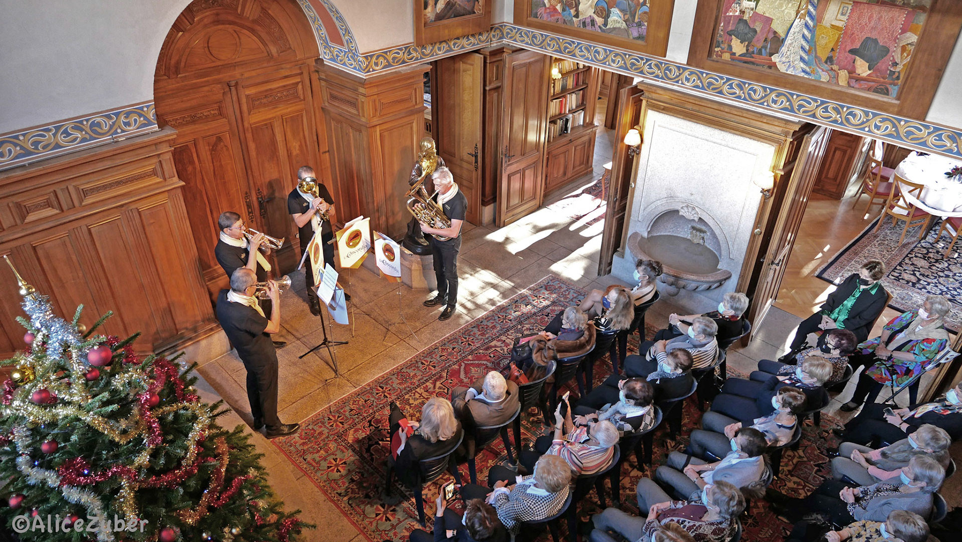 7 décembre 2021 - Au Château Mercier, Sierre. Programme: concert par le quatuor de cuivres Brass Tradition, apéritif, partie officielle avec nos invités, repas de gala, visite du Château Mercier, gâteau d'anniversaire. Photos ©Alice Zuber