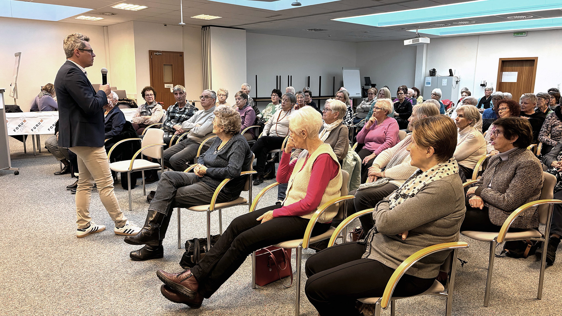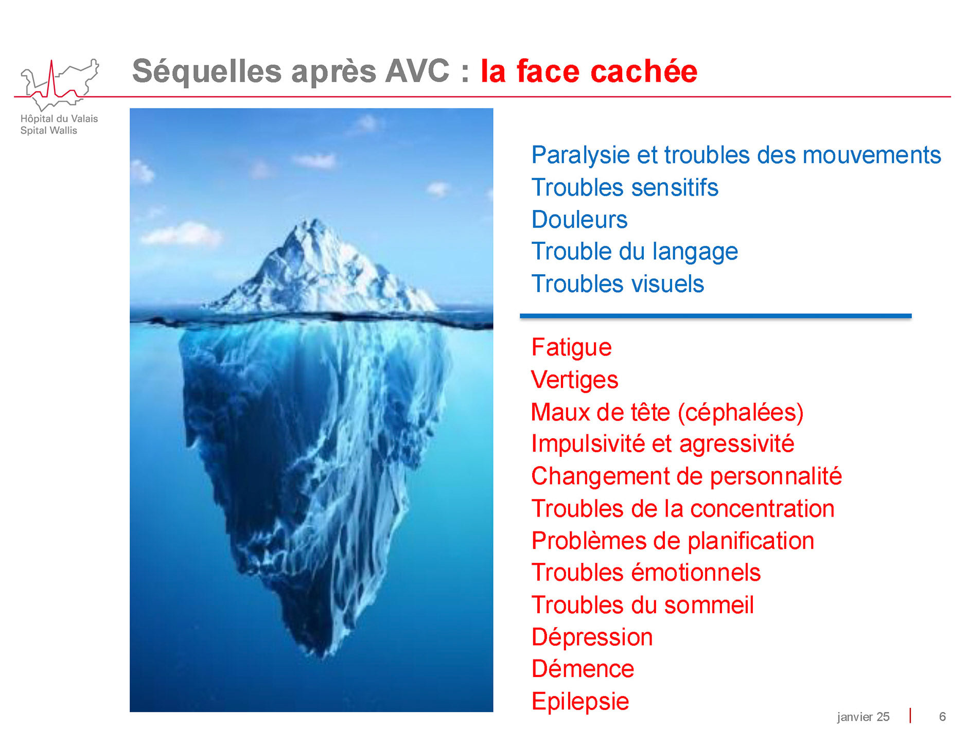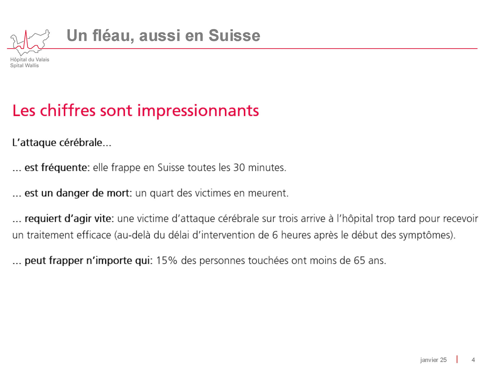 23 janvier 2025 - Conférence du Dr Christophe Bonvin, médecin chef du service de neurologie à l'Hôpital de Sion, sur les facteurs de risques d'un AVC et les moyens de les contrôler. Photos ©Alice Zuber - Tableaux Hôpital du Valais