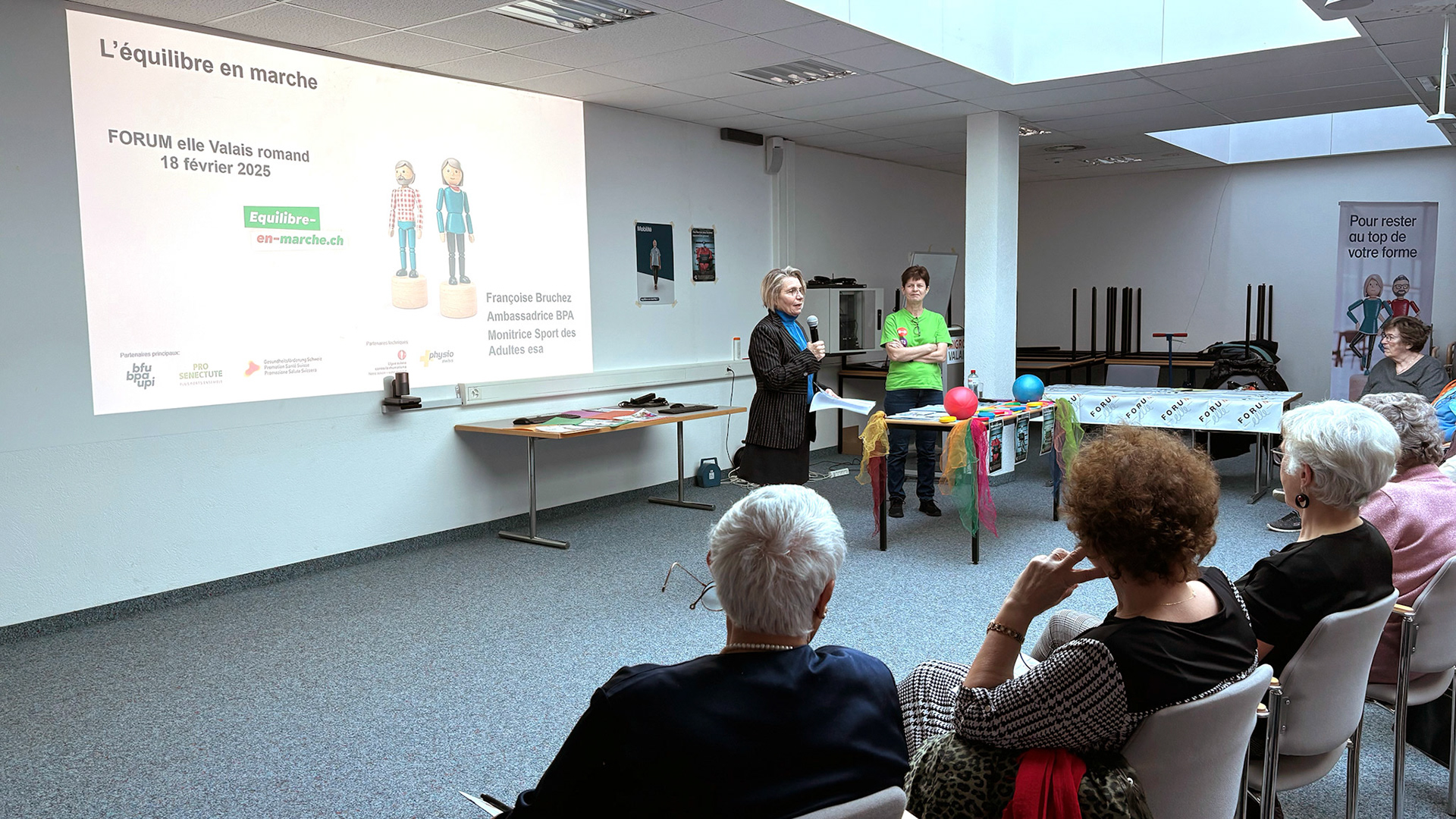 18 février 2025 - Présentation et illustration avec des parties pratiques par Mme Françoise Bruchez, ambassadrice du programme «Equilibre en marche» développé par le BPA. Photos ©Alice Zuber