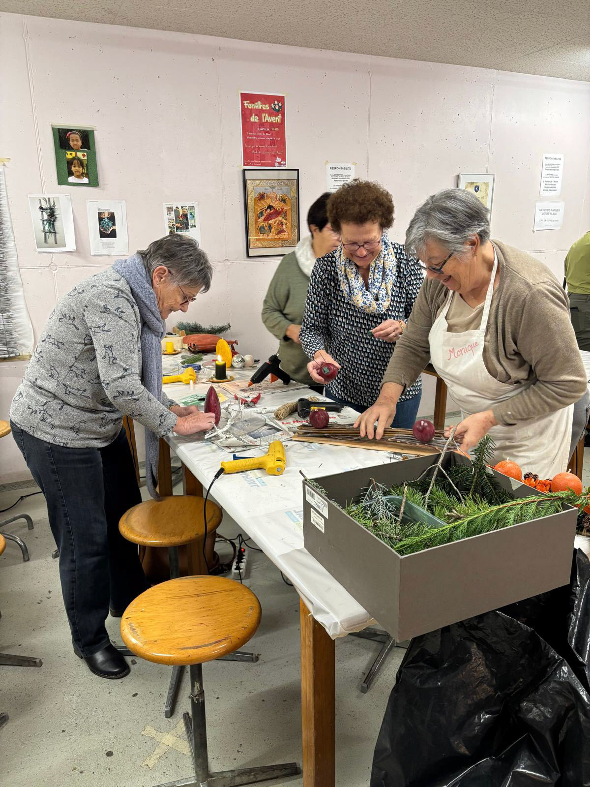 20 novembre et 27 novembre - Nous nous réunissons dans la salle de l'atelier de l'Avent à Grône pour confectionner notre propre couronne de l'Avent avec du matériel fourni sur place. Créativité, détente et partage font de ces heureux moments passés ensemble des souvenirs mémorables. Photos ©Esther Zuber